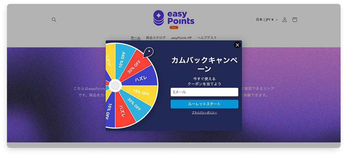 ※ Promolayerを利用したルーレットでクーポン獲得できる仕組み